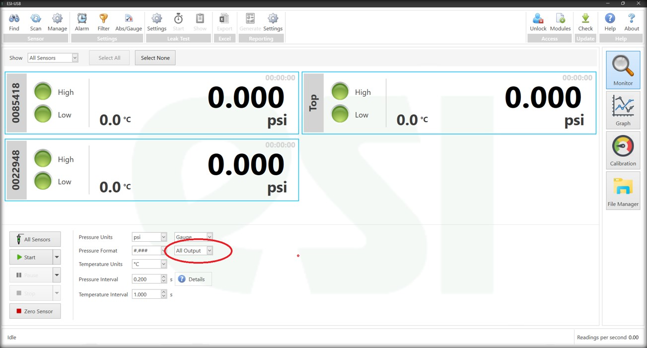 Um sicherzustellen, dass der gedruckte Bericht dasselbe Format hat, stellen Sie sicher, dass auf dem Bildschirm "All Output" ausgewählt ist.