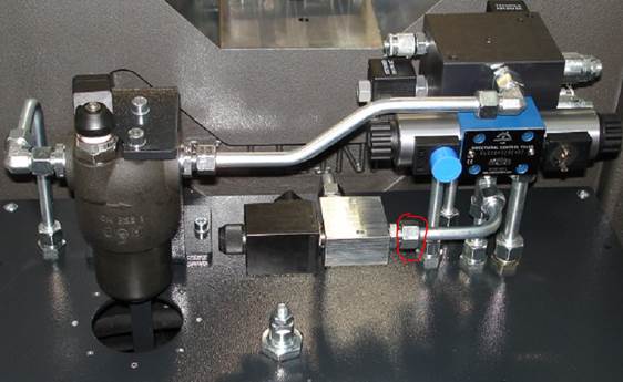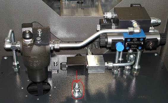 Move the machine completely to maximum opening. Switch off the machine and loosen this screw connection: