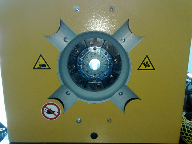 | Insert 32mm die set into the machine and close the machine until the dies touch just touch. Do not pressurize the machine. If the machine not moves itself you can use Y1 manual switch to close it. Switch off the main switch and unplug the machine from the power supply.
