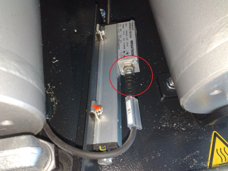 | Turn the machine main power on (not the hydraulics) and go to the picture sensor information. (you will find it under setup) The current value path sensor should be somewhere between 800 and 1200. If it is not like that loose the spacer bolts a little to move the sensor in the right position. Fasten the spacer bolts well if you have the sensor in the right position. |